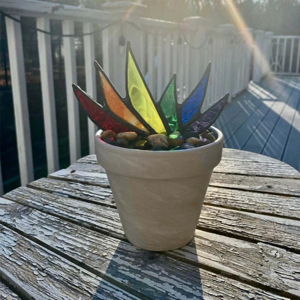 A maioria das plantas precisa de sol, solo e água para serem felizes. Mas esta planta de agave (suculenta) não. Tudo o que precisa é um pouco de luz . Isso porque ele o faz à mão com vitrais em seu estúdio em Cape Cod. Escolha entre dois tamanhos e, em seguida, coloque seu novo amigo botânico em um local ensolarado e observe os tons brilhantes de limão, esmeralda e azul-petróleo. Você já viu uma suculenta mais sublime? Feito à mão em Massachusetts.